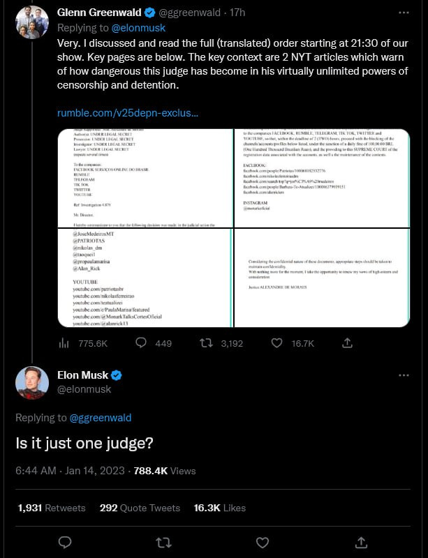 "My personal solidarity to MINISTER ALEXANDRE DE MORAES.