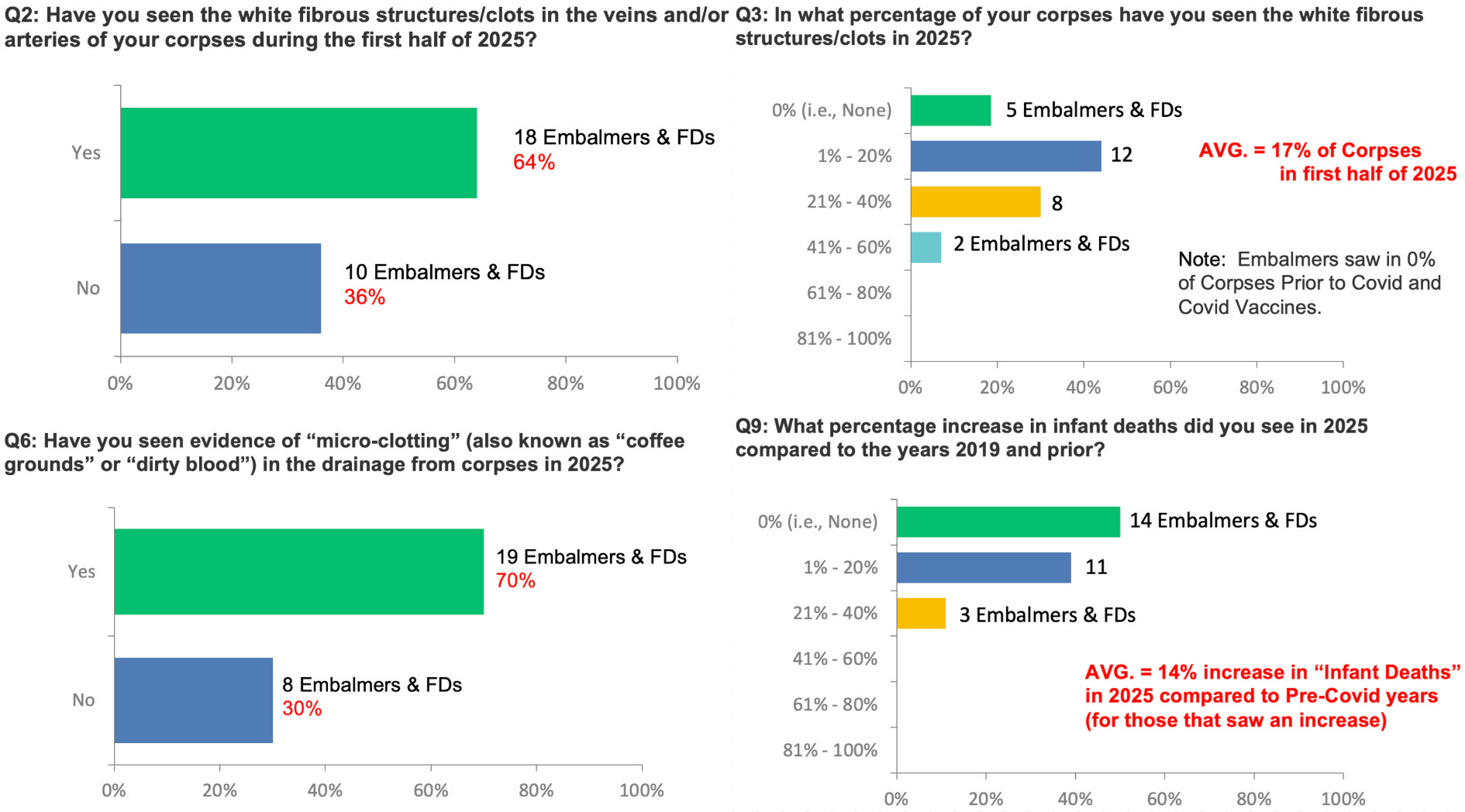 64% reported seeing white fibrous clots in corpses during the first half of 2025