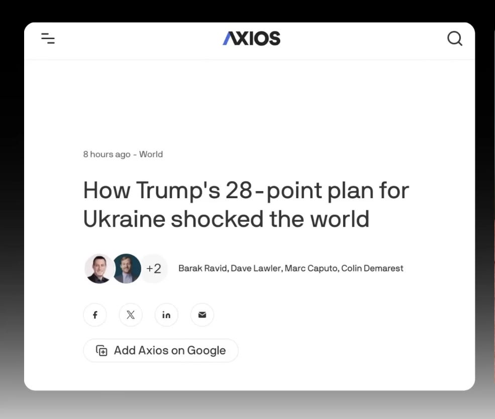 Meanwhile, the British Empire press is, for the most part, ignoring what is happening with Ukraine, save for Axios, which keeps drumming on Trump’s plan that hasn’t leaked…