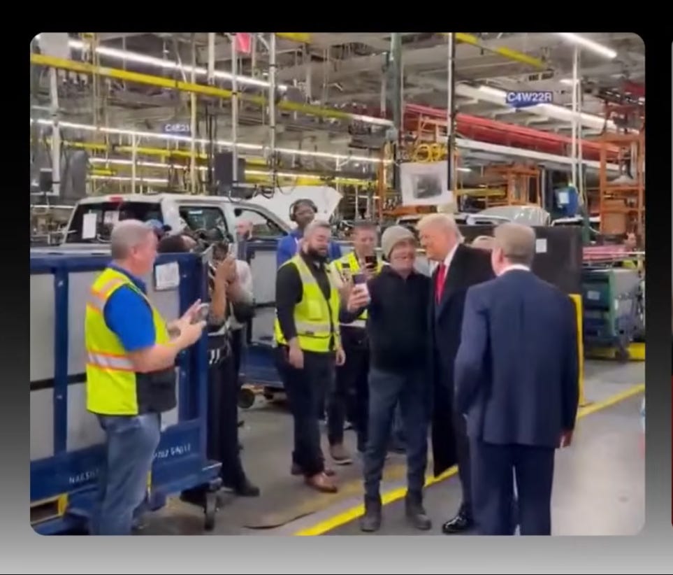 While they are mourning the end of their 80-year death grip on our country, Donald Trump was in Detroit yesterday, taking selfies with auto workers at a Ford plant running 24-hour shifts.