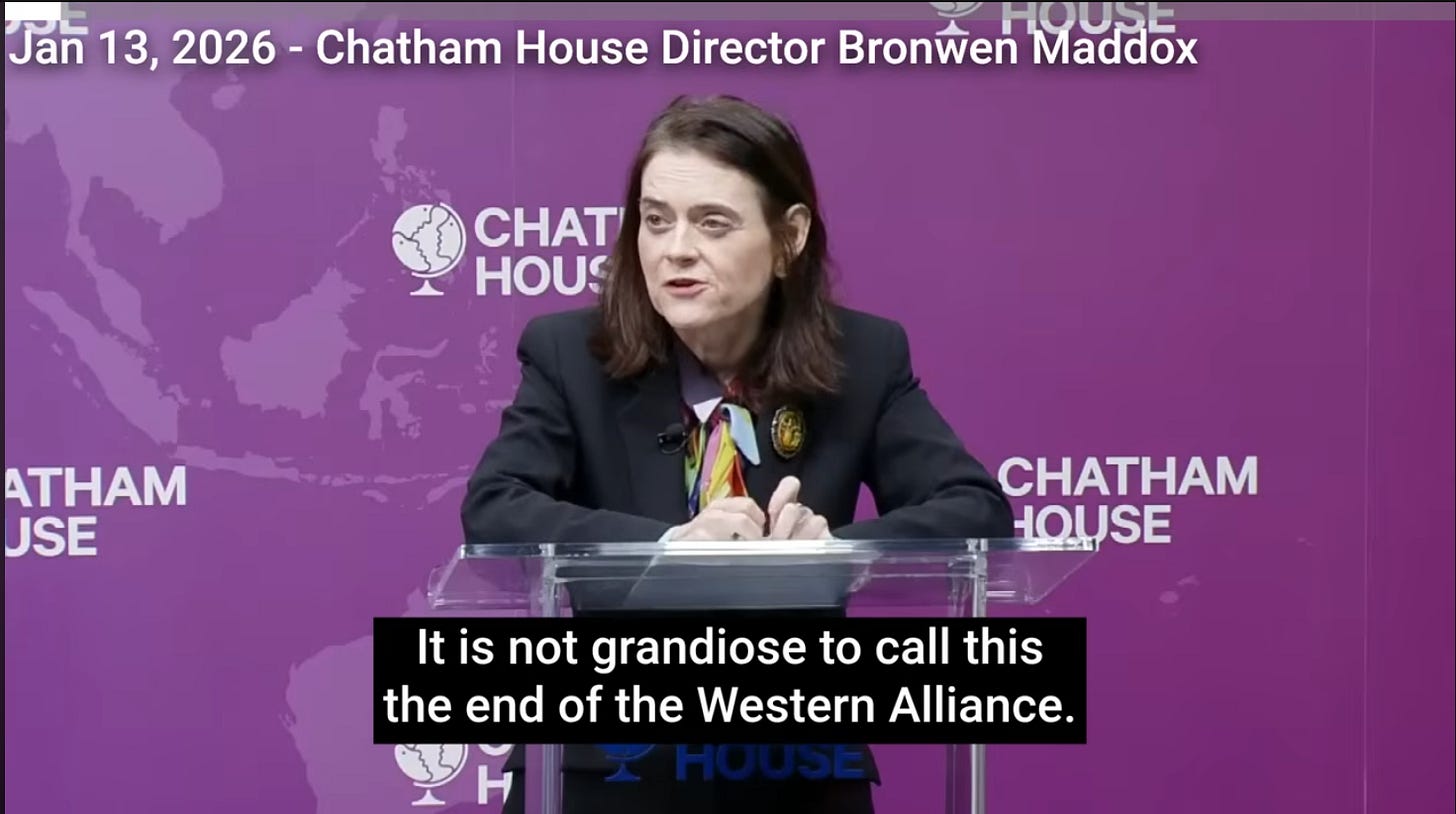 00:00 The Midweek Update - Chatham House PANIC: "Trump Destroyed the West" - January 14, 2026