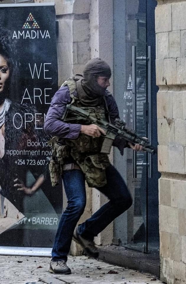 After which, he then linked up with Kenyan soldiers who had now established a perimeter around the compound and began to sweep the area for the terrorists still inside.