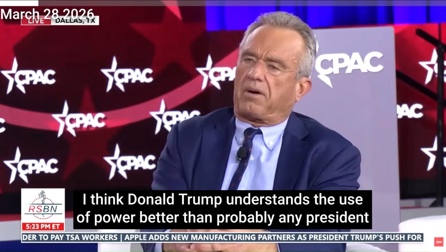RFK Jr., at CPAC, said his father and uncle would support what Trump is doing in Iran and in the economy.