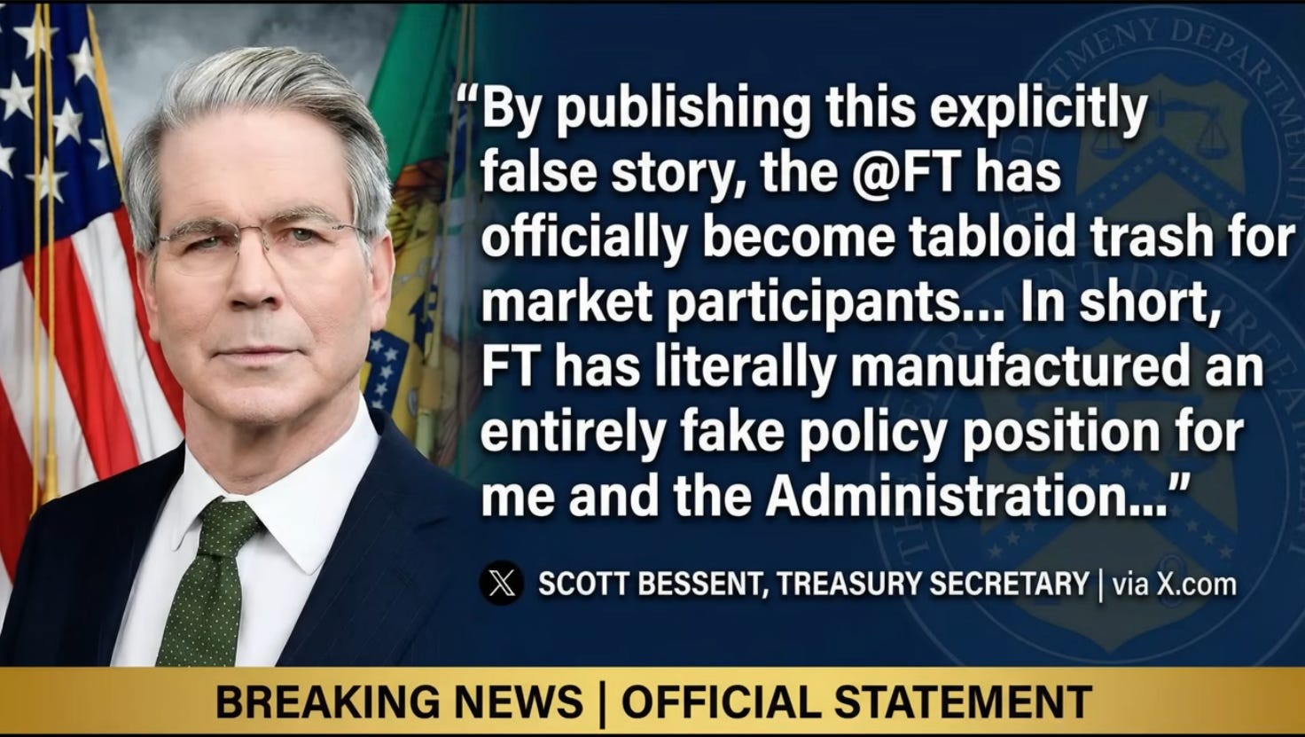 And before they published it, Bessent had given them an on-the-record denial, but they ran it anyway, citing anonymous sources.