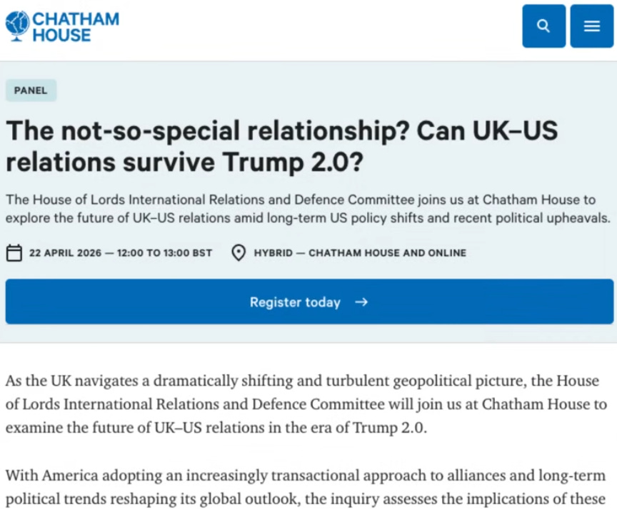 Chatham House also announced that the House of Lords International Relations and Defense Committee will come to Chatham House to discuss what they now call the not-so-special relationship and whether it can survive Trump 2.0.