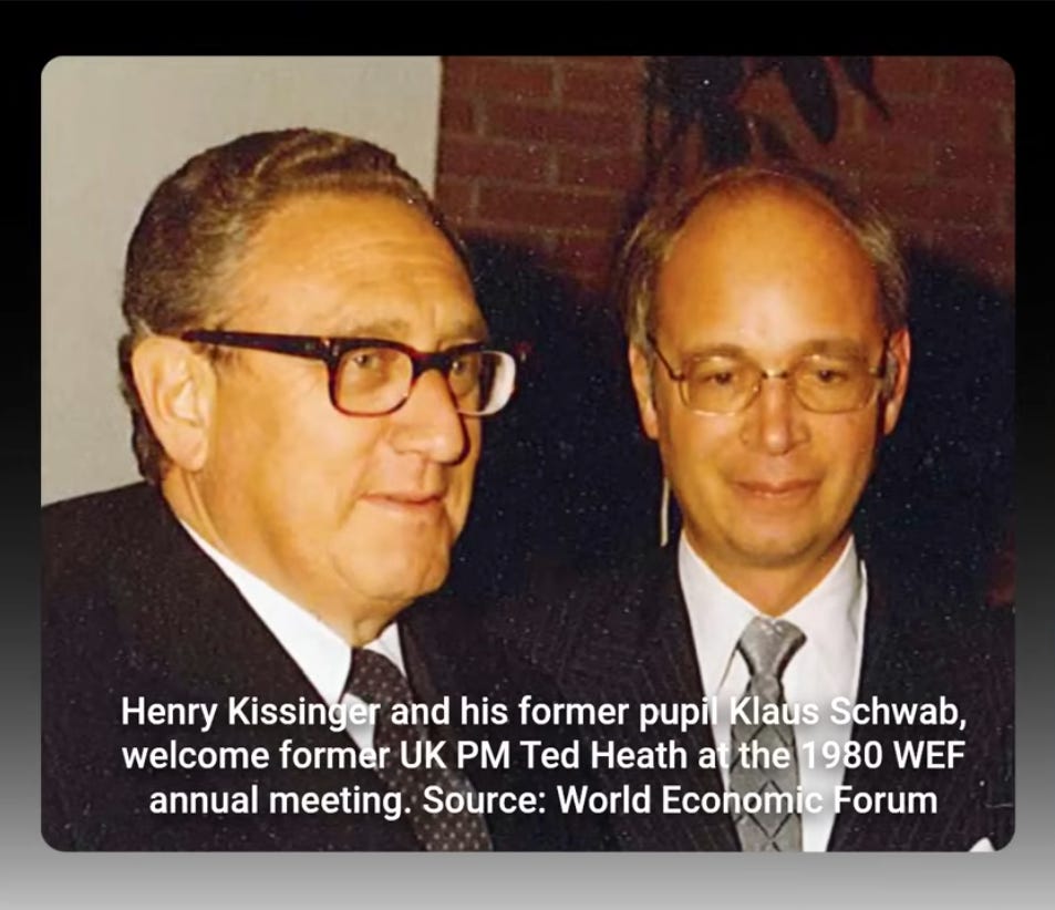 Klaus Schwab, who headed the WF until recently, was a student of Henry Kissinger at Harvard in 1966-67.