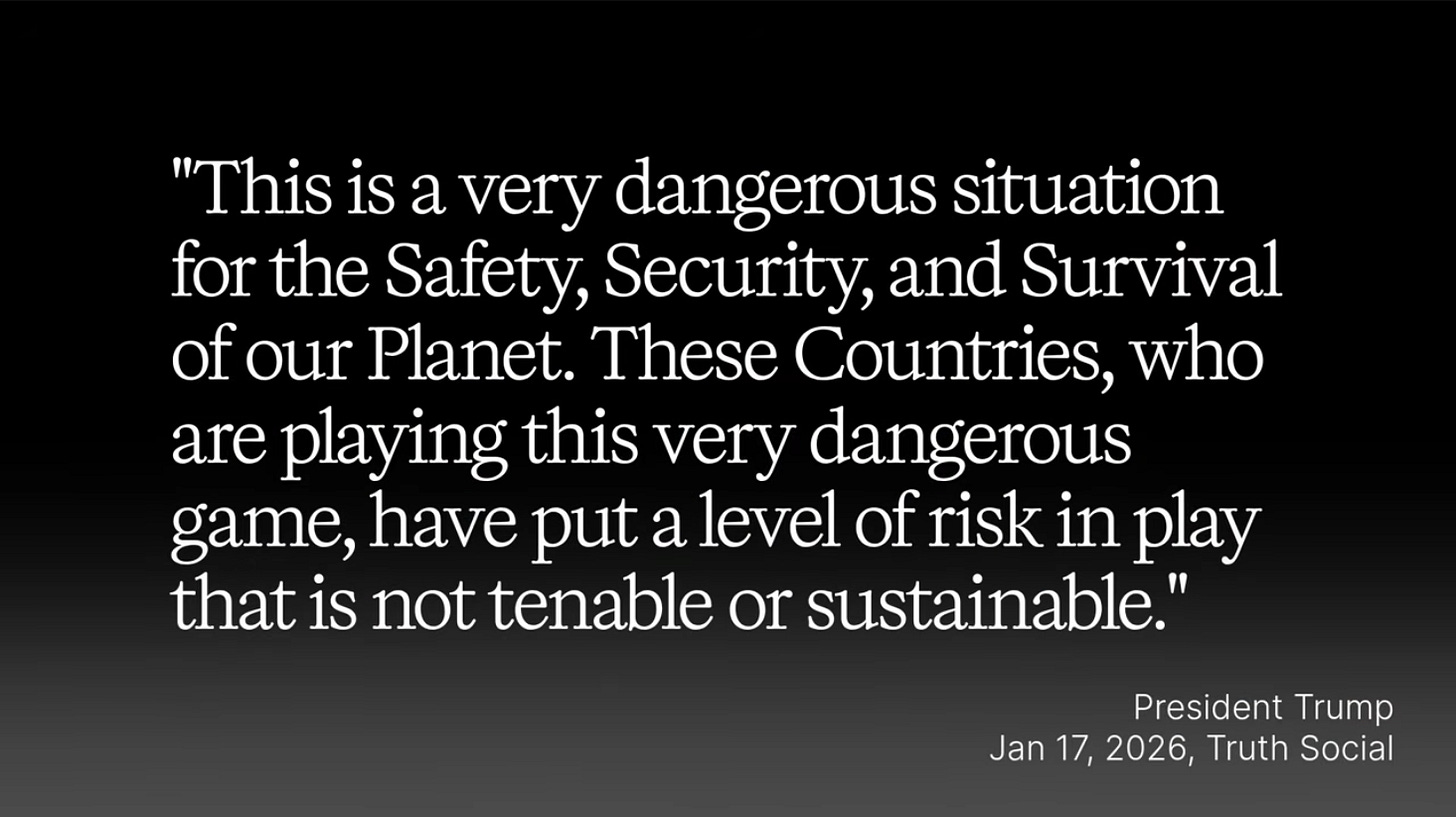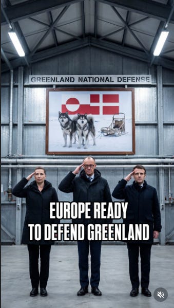 As of midweek last week, the Danes and the Brits organized European NATO members to fly into Greenland, trying to signal to the United States that significant NATO partners would be willing to militarily defend Greenland against the United States if it came to that.