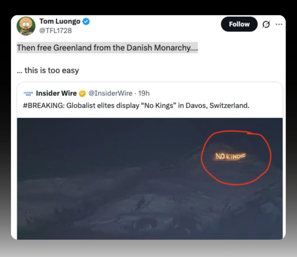 Now, you have to laugh because, as my friend Tom Luongo said, “If they meant it, they’d start freeing Greenland from the Danish monarchy.”