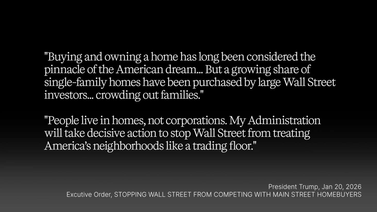 He is explicitly saying that large institutional investors should not buy single family homes.