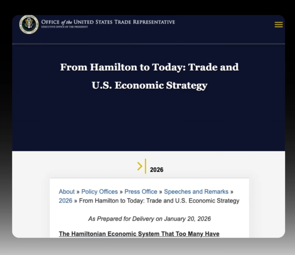 Well, U.S. Trade Representative Jameson Greer just delivered another bombshell at Davos in a speech entitled The Hamiltonian Economic System That Too Many Have Forgotten.