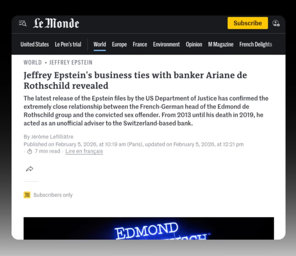 In France, the latest Epstein files confirm an EXTREMELY close relationship between the French-German head of the Edmond de Rothschild group, Arian de Rothschild, and convicted sex offender Jeffrey Epstein.
