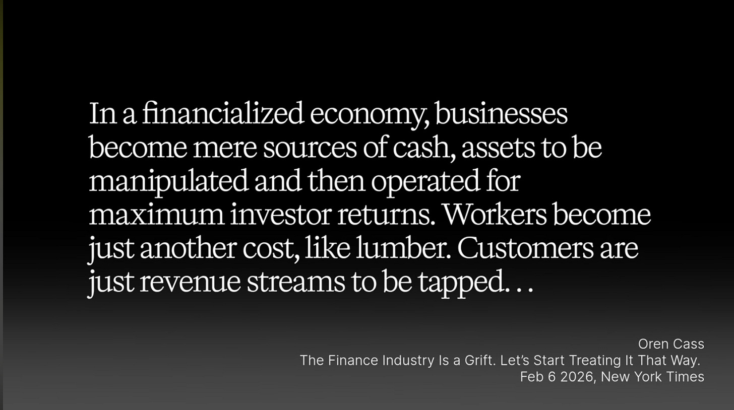Before Orrin Kost went on Bannon to be cross-examined about Trump’s American economic system, he wrote an article in the New York Times calling out Wall Street and the City of London for the financialization schemes and crimes through which they have looted our economy.