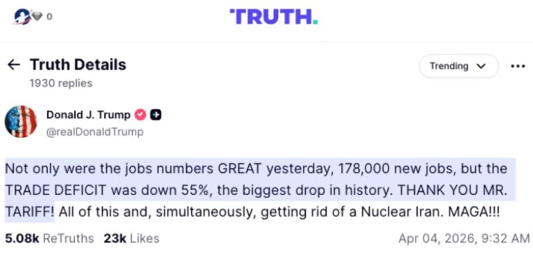 Then, the day after the anniversary of Liberation Day, those jobs numbers landed.