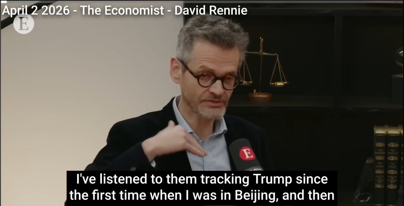 David Rennie, who’s The Economist’s geopolitical editor, made a confession similar to Kagan’s in a discussion where he described how China looks at Donald Trump…