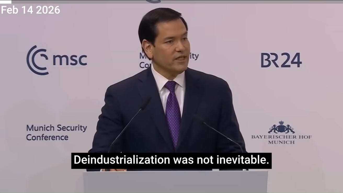 And as Secretary of State Rubio said, it was a conscious policy to de-industrialize.