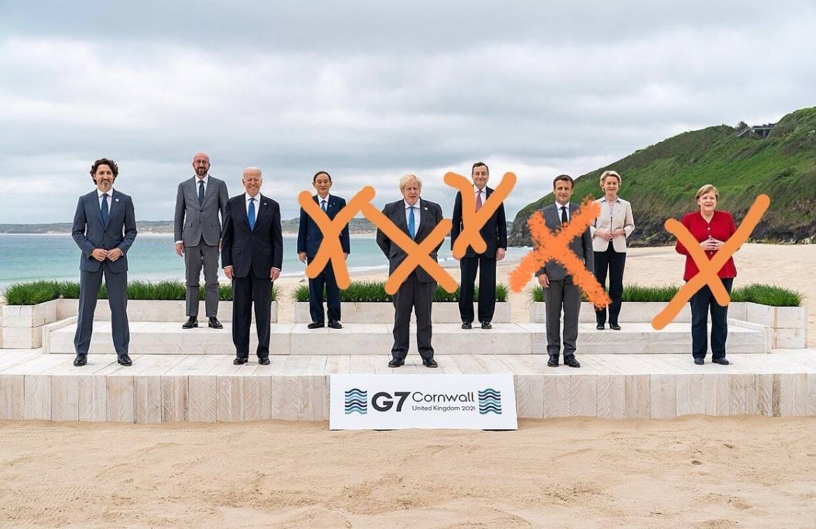 G7 - Who's Next to Exit?Decisive LibertyJul 16, 2022ShareMacron not out yetwill the entire board get reset?will Biden comes last? via Pepe Lives MatterThen there is, of course, will the next line of leadership really want G7 around???…Watch the SHELL GAME not the shells…PreviousNext