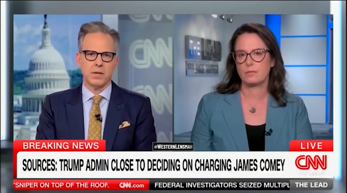 Meanwhile, Jake Tapper says Trump does seem to care if Comey is prosecuted, whic is EXACTLY what the Democrats did to Trump - DOH!