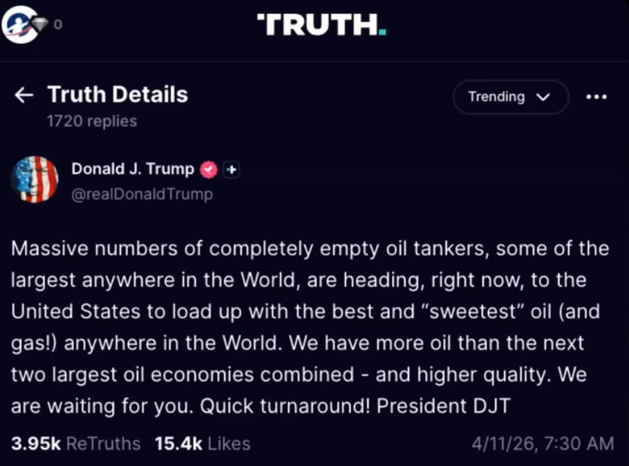 He posted that a massive number of empty oil tankers were headed to the U.S. to fill up on oil and gas.