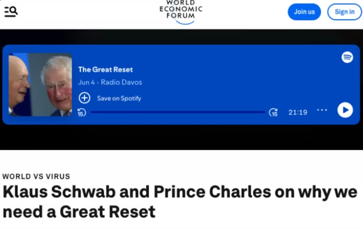 Prince Charles, now the King, joined Schwab in announcing the Great Reset.