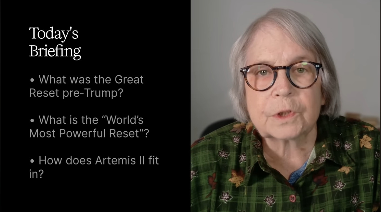 She connects Iran talks involving regional players to a “Board of Peace,” and ends by linking Artemis II’s splashdown and a moon-to-Mars vision to this broader reset, urging viewers to follow Promethean Action and support midterm efforts.