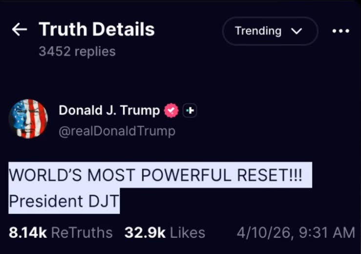 Is that what Trump is talking about when he writes “world’s most powerful reset”?