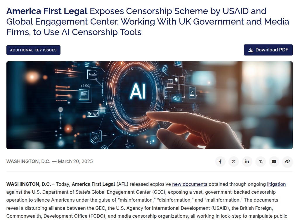 The following image links to the America First Legal Press Release and AFL efforts referred to by Mike Benz…