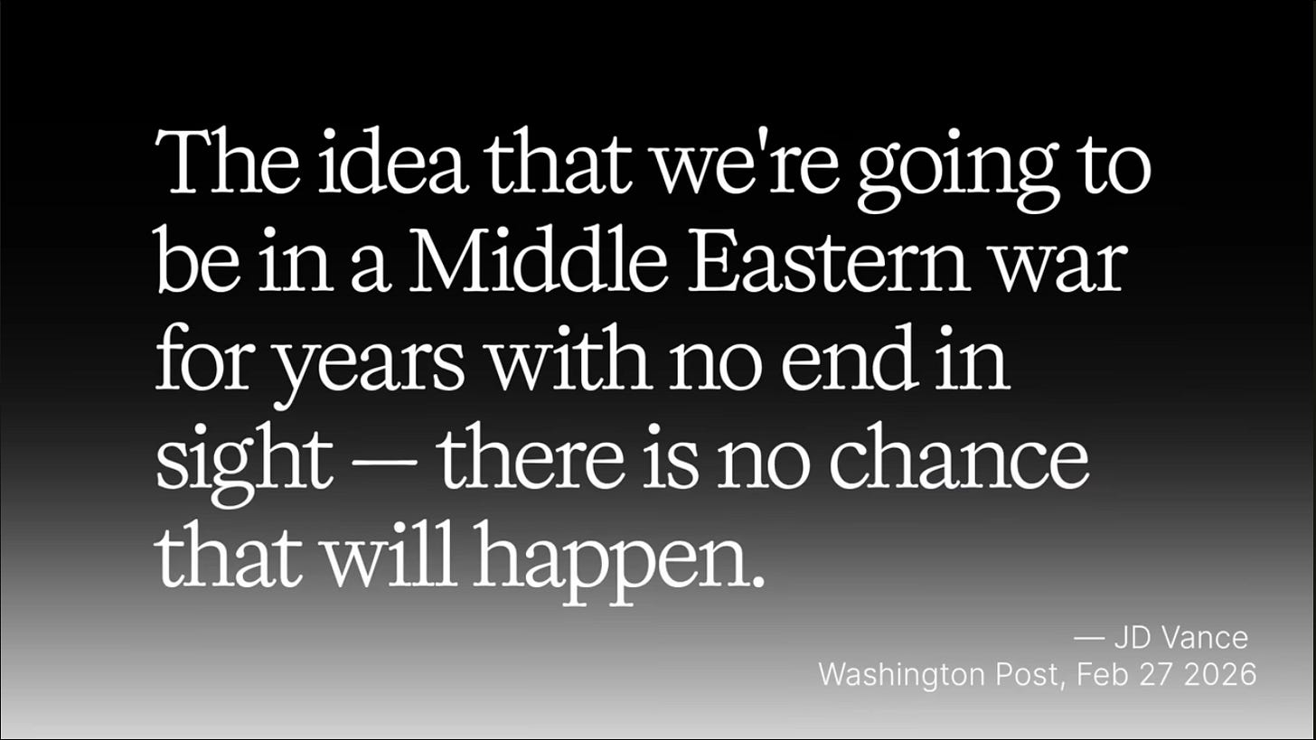 And Vice President Vance, a Marine veteran and the most vocal opponent of the forever wars in the administration, has told us there is no chance this becomes one.