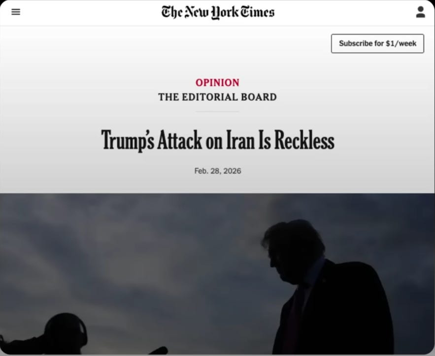 Right on cue, the New York Times editorial board is out shrieking that Trump is a madman who promised no new wars.