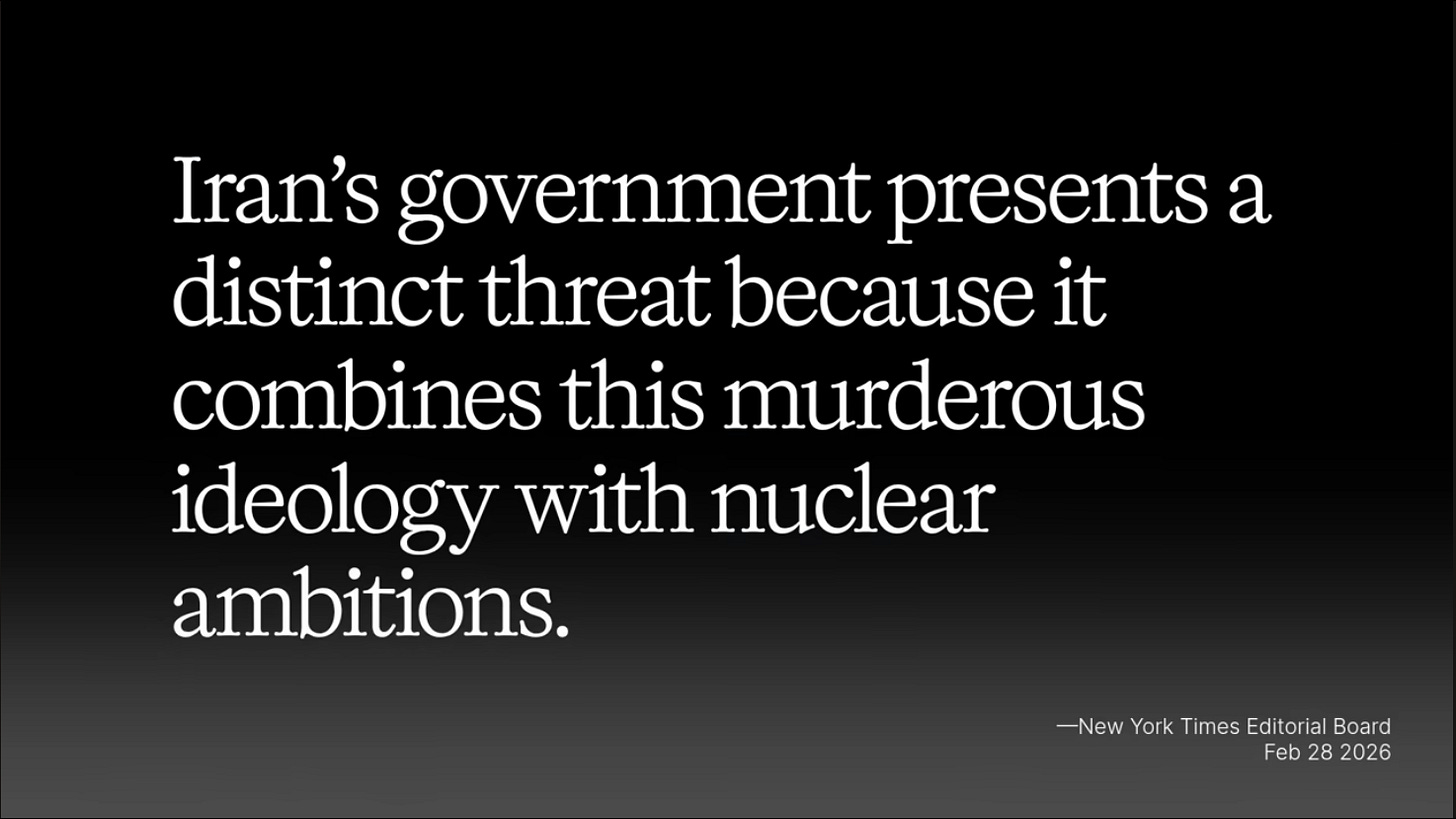 They denounced the war as the act of a madman, but then admitted in their own editorial that Iran presents, and quoting them, quote,