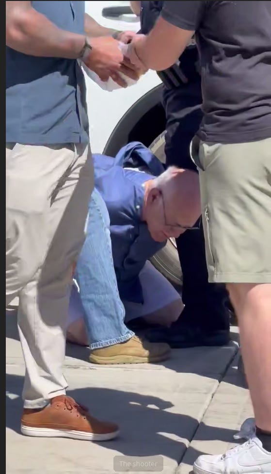 He was shot in the neck - we have a video showing the moment of impact, but will not share it.