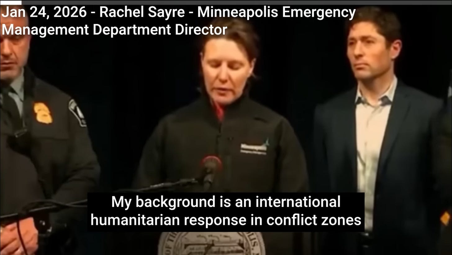 In her Monday update on the YT Promethean Updates channel, Susan Kokinda pointed to USAID veteran and Minneapolis Emergency Services Director Rachel Sayre as a representative of the former US and British-sponsored color revolutionists deployed now against President Trump.