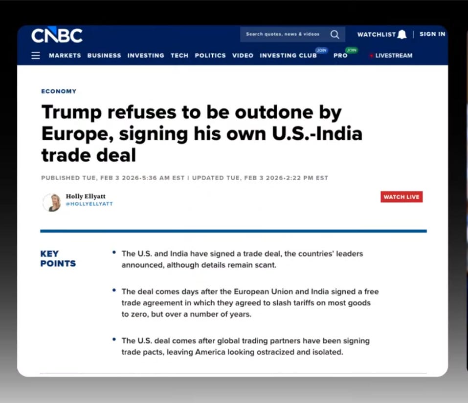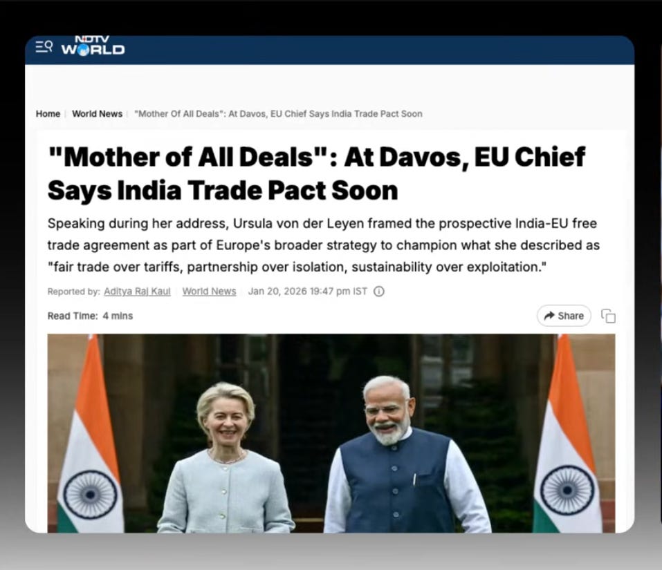 Von der Leyen stood up on stage and boasted that the mother of all trade deals between the EU and India was coming, and it was signed on January 27th.