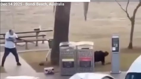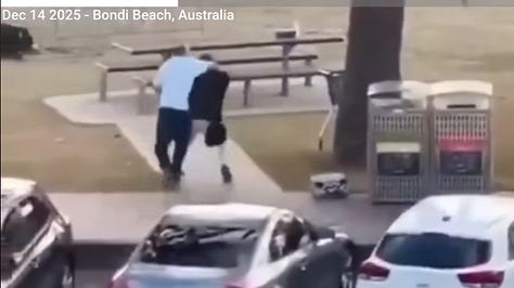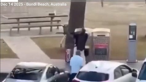 A father and his son from Pakistan open fire in Bondi Beach, Australia (where guns have been outlawed since 1996) on Sunday, where 16 died, and many were injured during a Hanukkah celebration that was underway