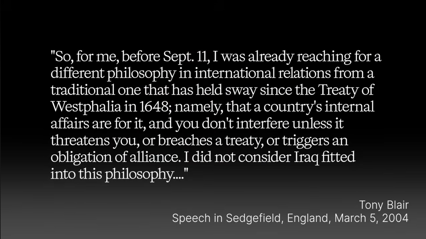 Tony Blair, on behalf of the British Empire, openly rejected Westphalian principles and gave us the forever wars, which Trump is now ending.