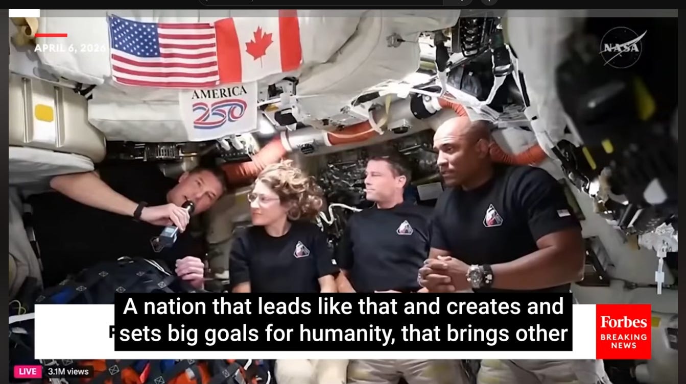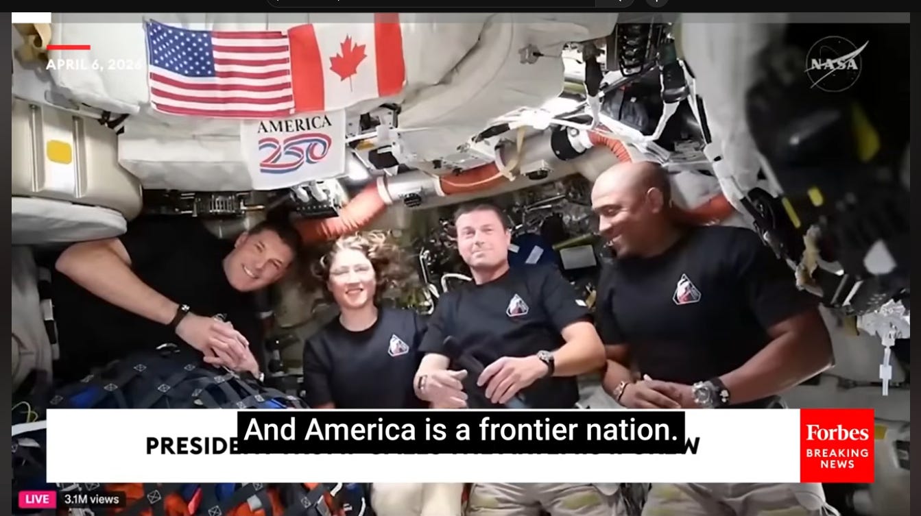 “And America is a frontier nation and the four brave astronauts Artemis II are a modern day, you really are modern day pioneers, all of you.