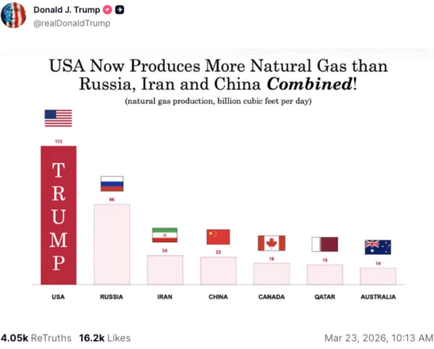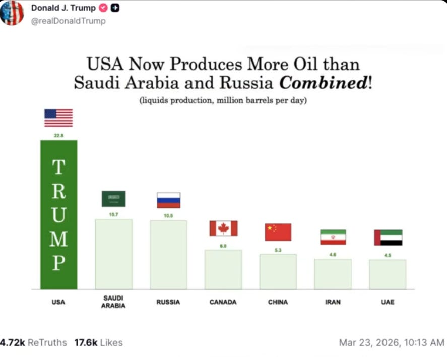 Here’s Donald Trump this week posting the numbers on American dominance in fossil fuel production thanks to his policies…