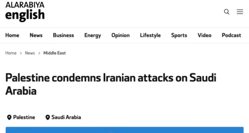 The Palestinian Authority condemning Iranian attacks on Gulf states and reaffirming solidarity with Saudi Arabia.