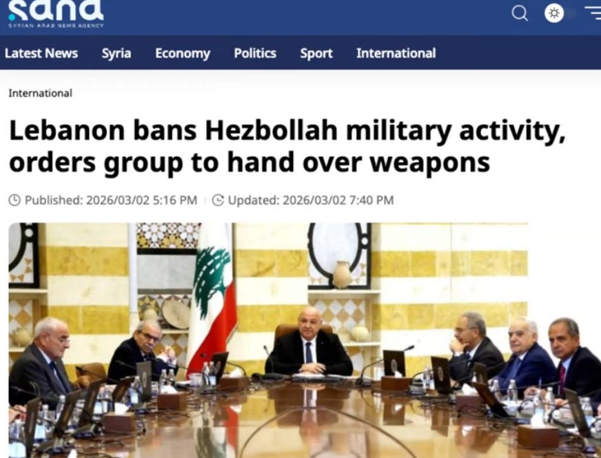 In early March, the Lebanese government banned Hezbollah and told it to turn over its weapons.