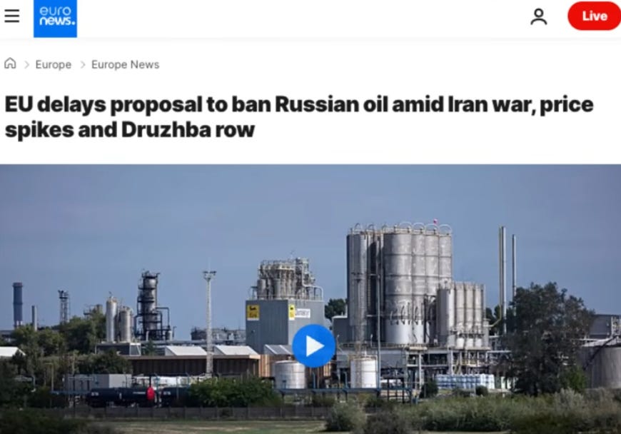And then, quietly, with almost no fanfare, Brussels pulled its scheduled April 15th vote to permanently ban Russian oil imports, citing current geopolitical developments.