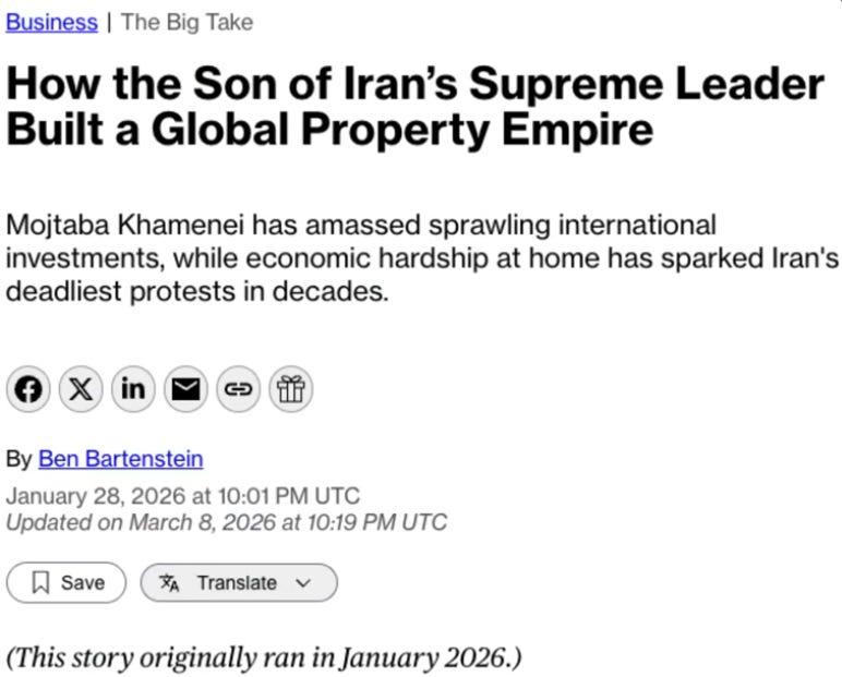 Bloomberg tracked the financial holdings of Mojtaba Khamenei.