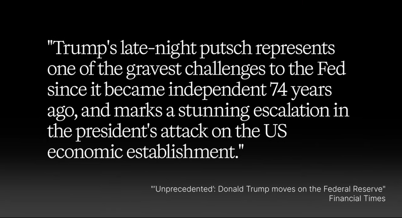 Susan Kokinda discusses Donald Trump's firing of Federal Reserve Governor Lisa Cook and its implications.