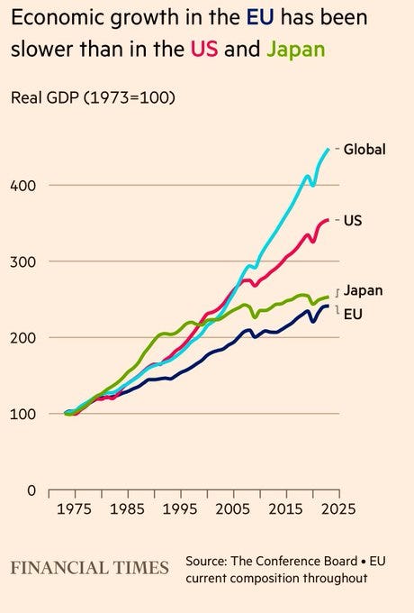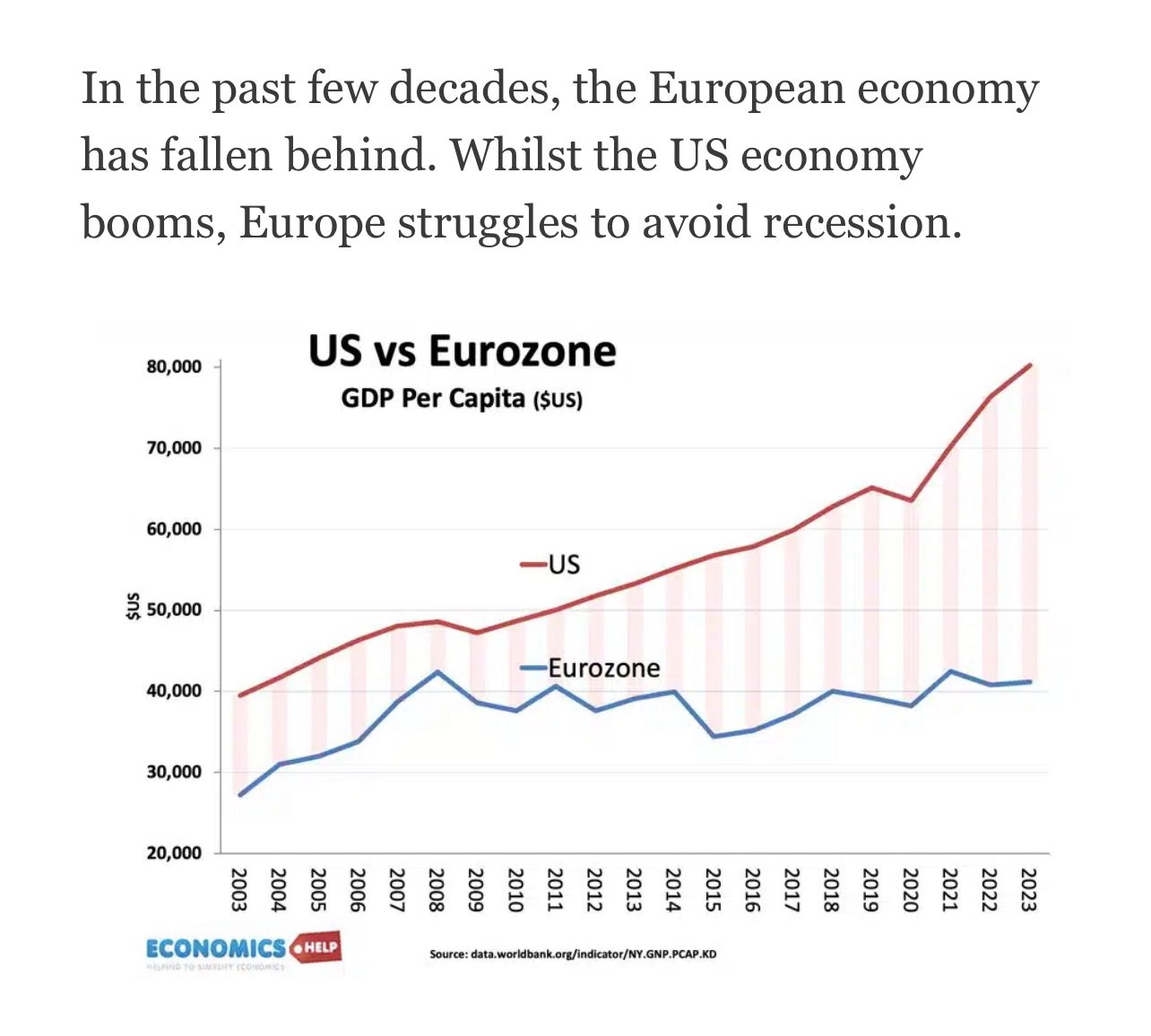 Ever notice how the "experts" know more than those involved? The most recent economic reports for Europe and the U.S. show the U.S. economcy growing faster than his first term, while the EU economy has been hurting since the Biden administration. This person's comment is an opinion, not a fact. Many facets are not even being mentioned, but this subscriber felt a need to push buttons because their buttons were pushed. NOT a way to make a point...