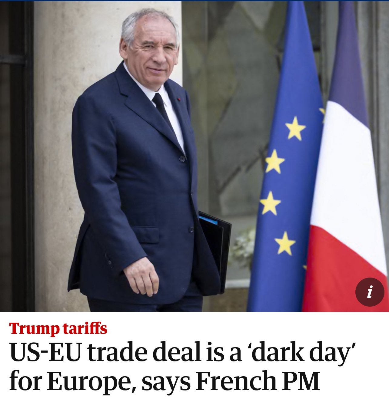 Before this “deal” was struck, Trump threatened 100% tariffs on EU cars, steel & luxury goods.