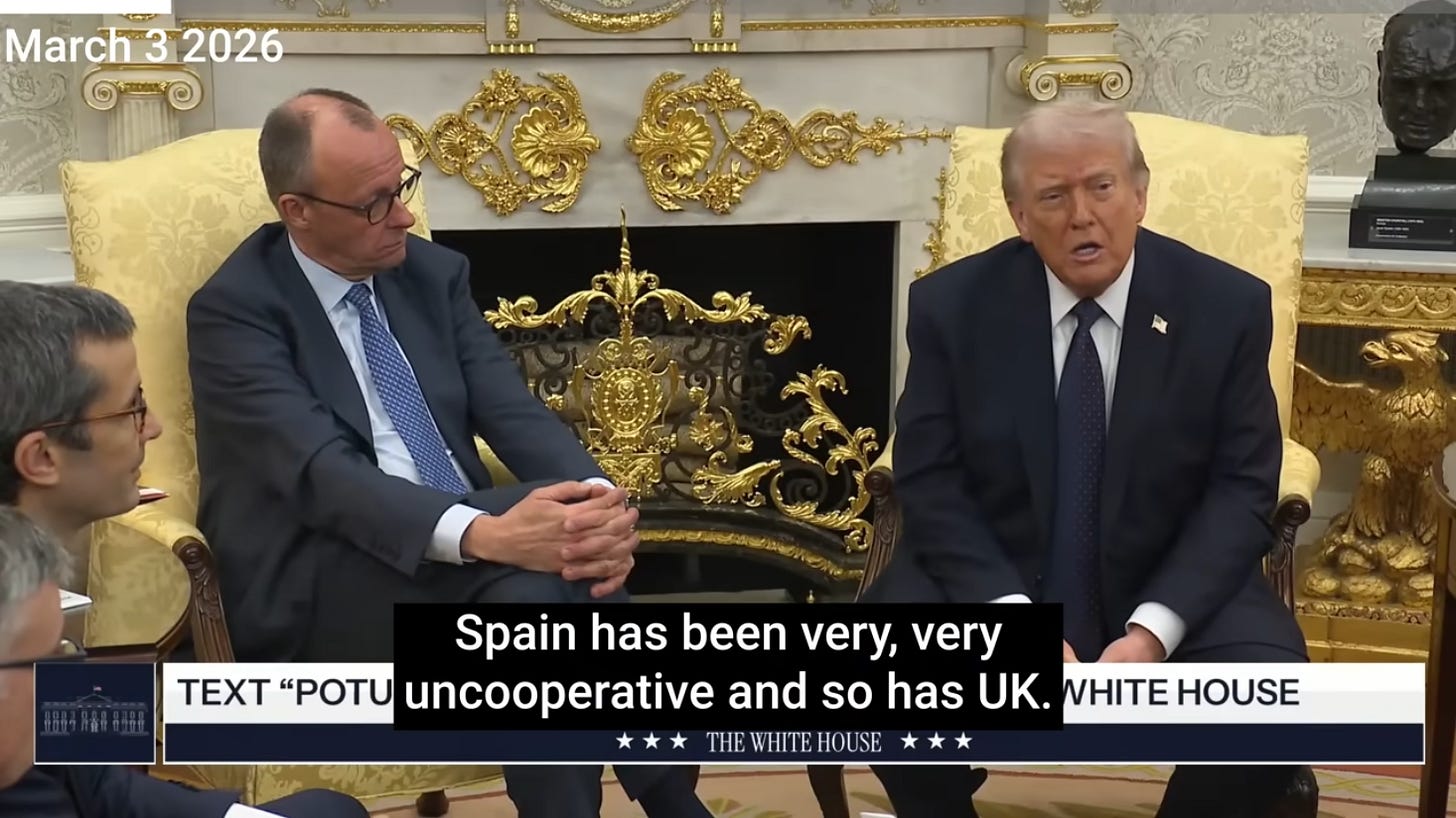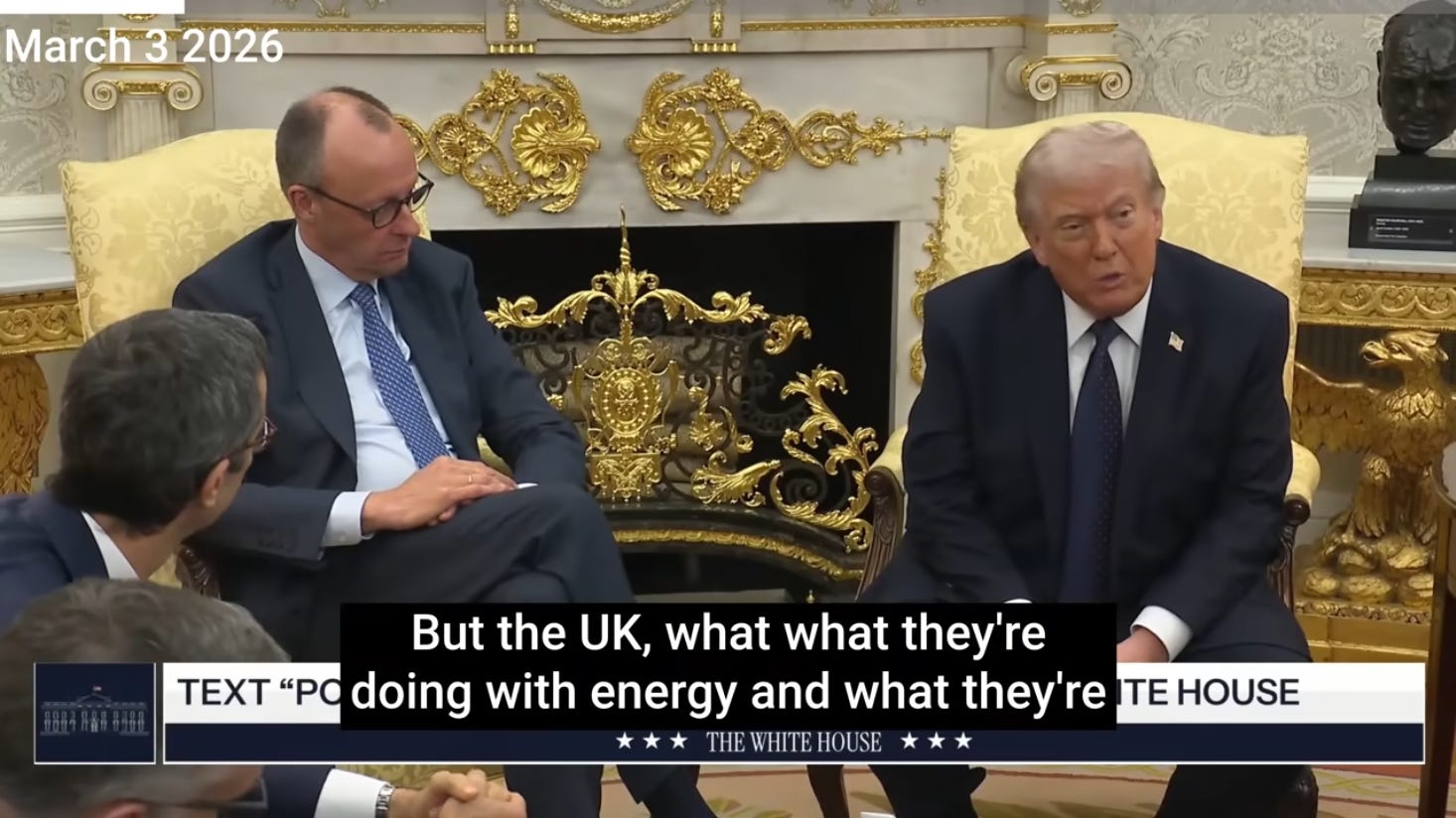 Now, look who was sitting next to Donald Trump at that press availability - German Chancellor Friedrich Merz, who backed the U.S. position on Iran and who recently stated that shutting down Germany’s nuclear power plants was a catastrophic mistake.