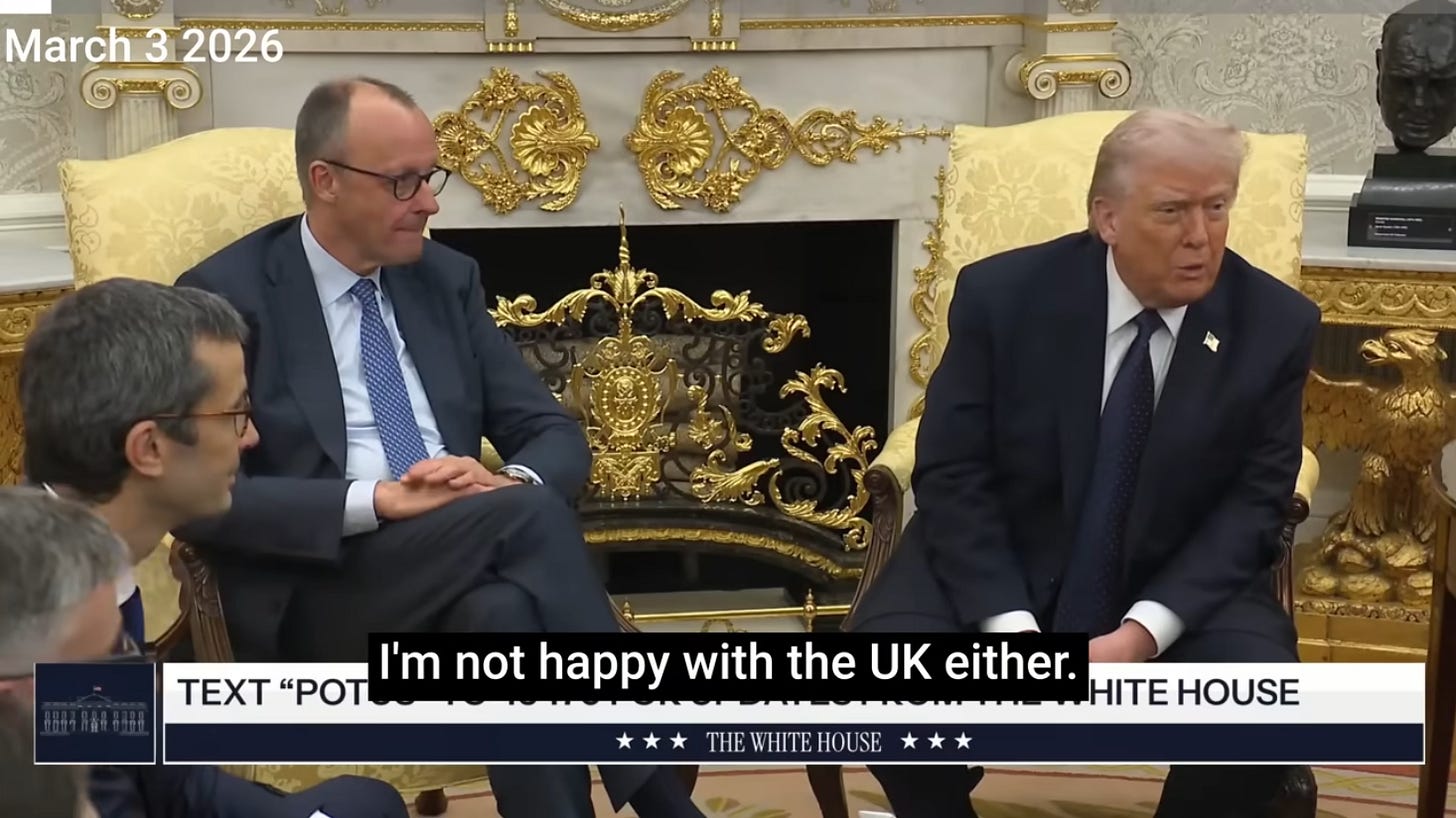 What you’re watching is an American president who doesn’t need Britain’s permission to strike Iran and doesn’t need Britain’s insurance markets to keep the world’s oil moving.