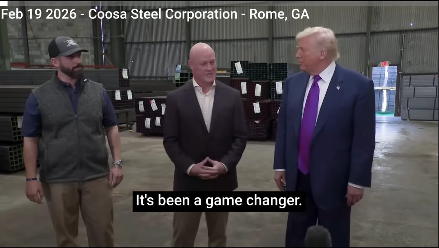 Now, as far as the Supreme Court’s decision nullifying IEEPA as a vehicle for imposing tariffs, the president and Bessent made clear that the authority exists through many other provisions, and there will be no let-up in the administration’s defense of American industry and workers.