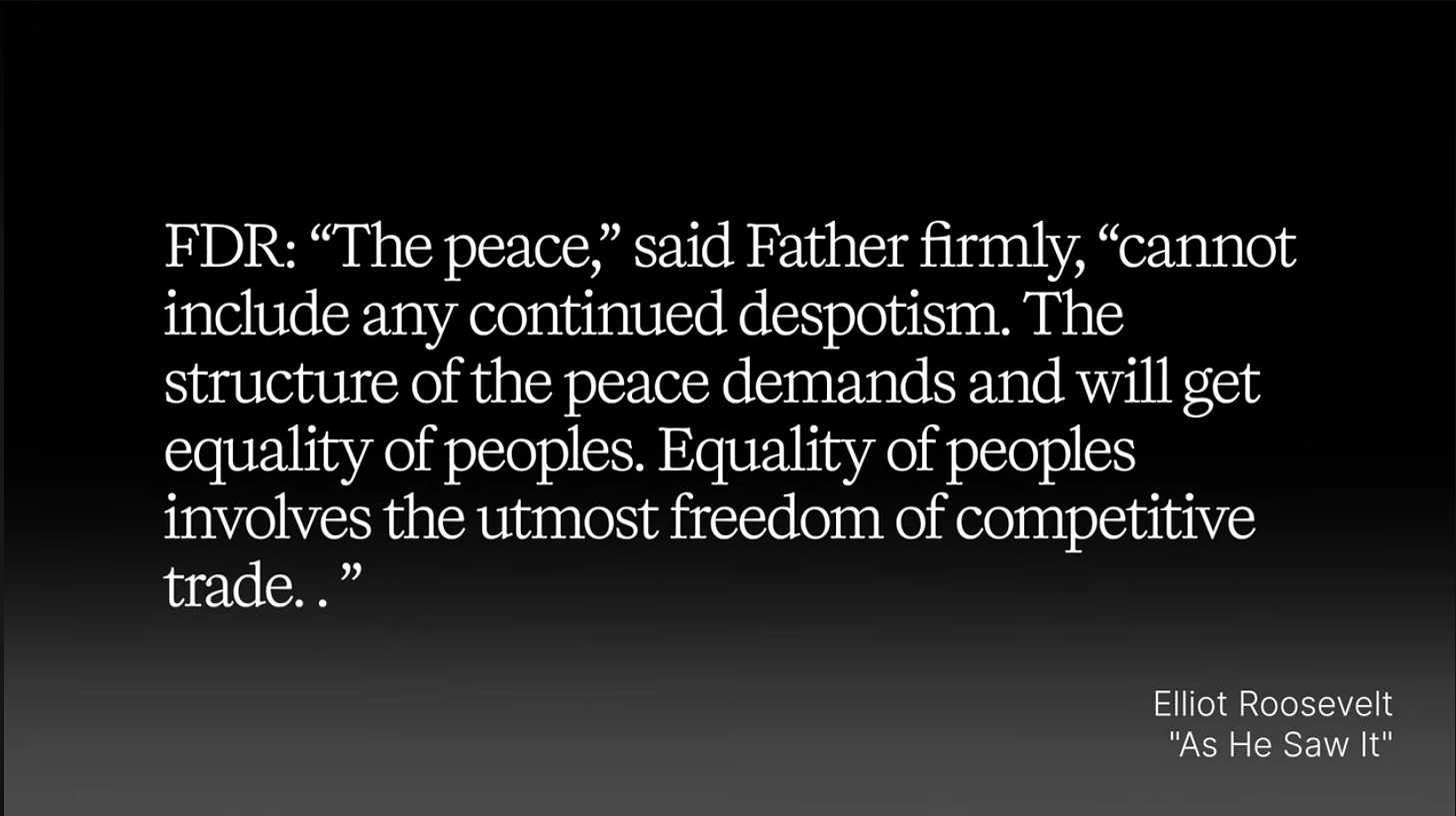 Roosevelt was determined to uproot the colonial looting regime, which was the British Empire, and replace it with American methods of economic development.