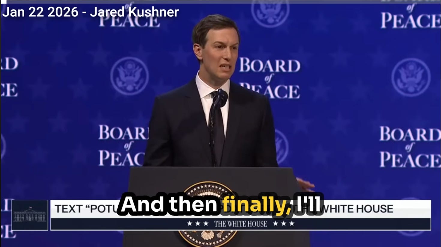 “And clearly the focus is right now on Gaza and making sure that the plan that’s about to be presented to you here today, this vision for the future of Gaza, this vision for the future of the region, is not just possible and promising, it is our destiny if we put the time and the effort that it requires, as I know this board will do.