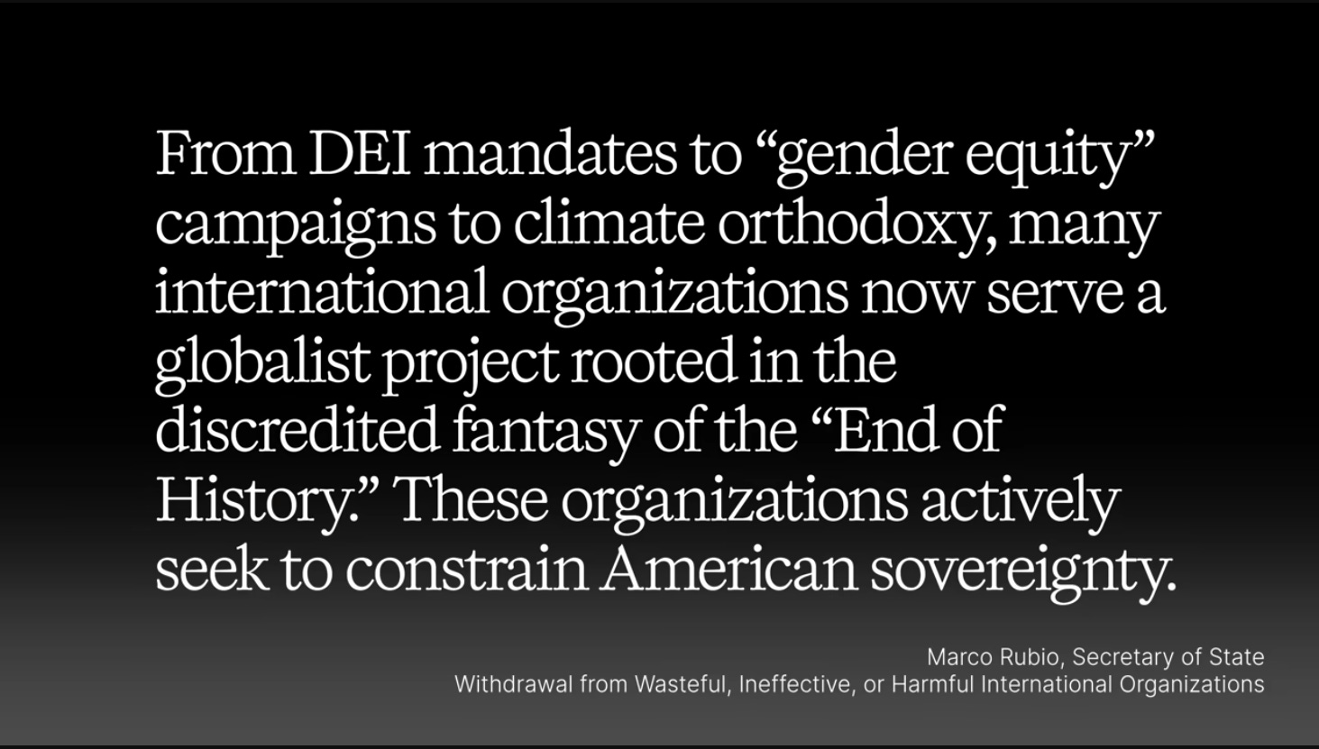 Marco Rubio made clear they’re pulling the plug on what he called a sprawling architecture of global governance, which, as he put it, serves the same elite networks of the multilateral NGO complex.