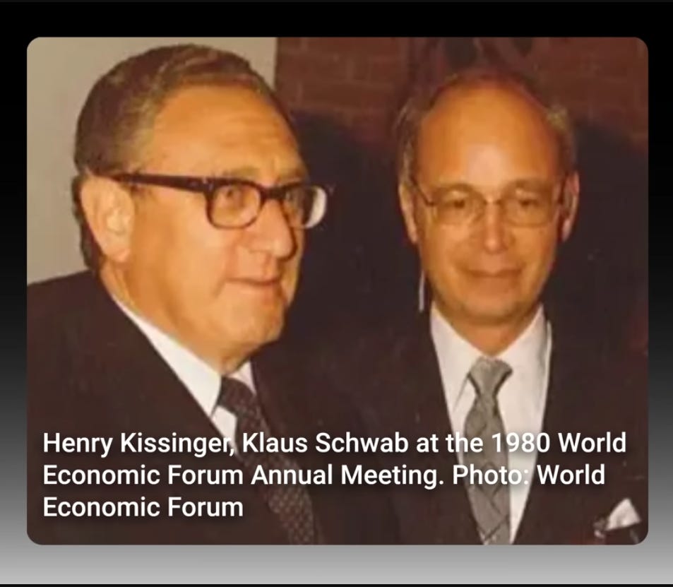 Everyone knows it was created by Klaus Schwab, but he had been mentored by Henry Kissinger at Harvard in the late 1960s.